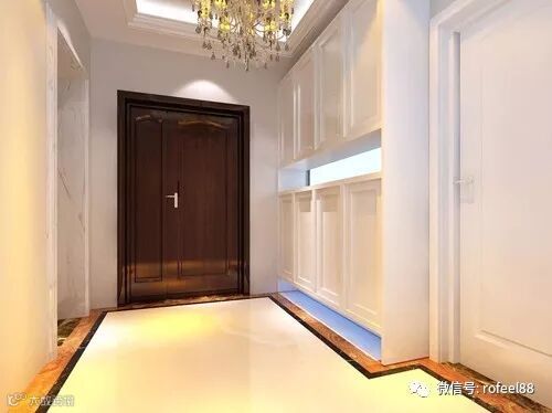 2、比如某套作品,设计师就给卫生间选了室内门,顿时你会觉得卫生间就是一个隐蔽私密的空间。由于室内和装修风格息息相关,建议业主在装修之前,对哪个房间采用何种门,事先就要有一个明确的规划。室内门的造型要与居室的装修风格相一致,家居的装修风格主要分为中式、欧式、简约、混搭、古典等,如果房间的装修是欧式风格,那室内门也选择欧式的,比如,雕花的室内门和欧式的镜面彼此对照。