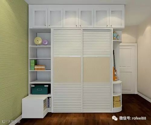 4、定制衣柜长时间使用推拉门、防尘条可能会有轻微脱胶现象,用双面胶粘合即可;下轨道定位器定位出现缝隙,可用一字螺丝刀对准定位器往侧板边推至密缝处即可;推拉门出现倾斜现象,往右倾斜则调左底轮“松”的标志处或右底轮“紧”的标志处。