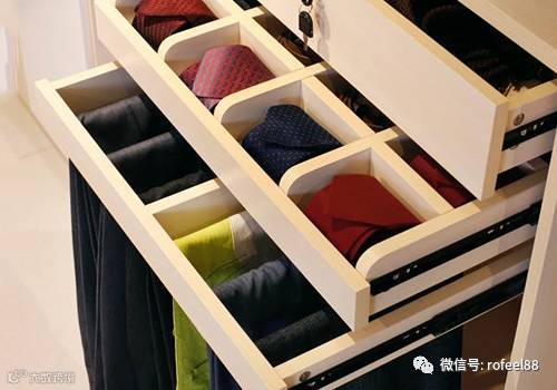 裤架、格子架、时尚抽、拉篮、抽屉、隐形穿衣镜、活动隔板、可调节式挂衣杆、鞋架、梳妆台……这些在普通衣柜里几乎见不到,等同于衣帽间的功能,定制衣柜都可以让你拥有。所以说,有了定制衣柜,等于有了衣帽间,等于多出一间房。