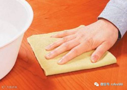 水痕通常要经过一段时间才能消失。如果一个月后它仍可见,请用一块涂了少量色拉油或蛋黄酱的干净软布于水痕处顺木纹方向擦拭。或可用湿布盖在痕印上,然后用电熨斗小心地按压湿布数次,痕印即可淡化。