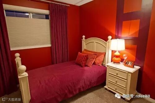 红色是中国的吉祥色,但室内红色过多会让眼睛负担过重,产生头晕目眩的感觉。建议选择红色在软装饰上使用,比如:窗帘、床品,靠包等,而用淡淡的米色或清新的白色搭配,可以使人神清气爽,更能突出红色的喜庆气氛。