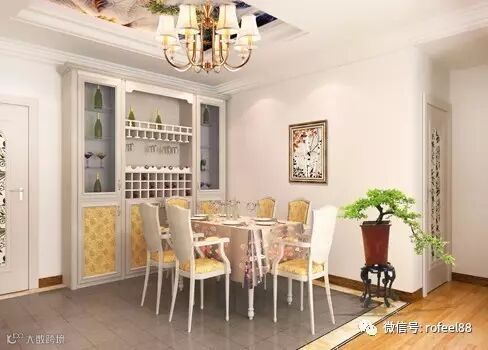 古典的图纹,高雅却又带着几分内敛。绿色的植物,给低调的空间增添了活力的气氛,也给视觉带来了一个突出的亮点。欧式酒柜在这里,变成了一个装饰,但还是有着古典风格的魅力。
