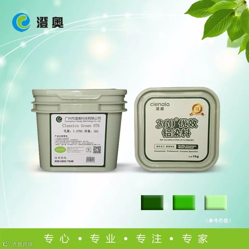 用途:适用于铝阳极氧化吸附染色的水溶性染料,产生的绿色调,仅推荐用于室内。由于染料在某些特定条件下会产生霉变现象,因此新开染液需添加防霉剂。