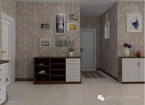 如果进门的地方比较宽敞,可以摆放个鞋柜,把换下来的鞋子放在柜子里,以免放在地上乱糟糟的,而柜子上面可以放一些小饰品,起装饰作用。