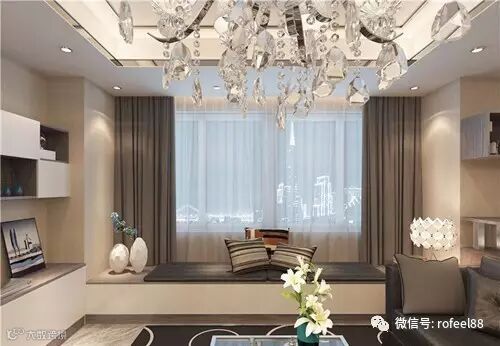 小客厅靠窗的位置如果没有办法放下沙发的话不妨随意打造一个长条榻榻米飘窗柜。不仅扩大了客厅的休闲空间,同时也增加了储物空间。