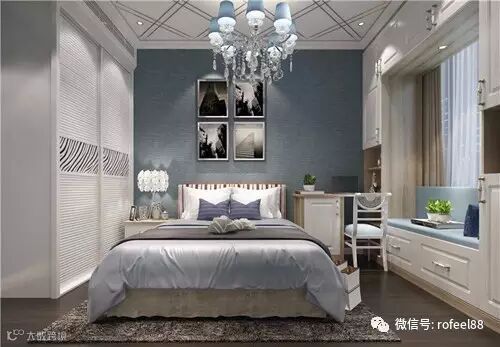 飘窗的设计最重要的是要舒适、惬意,当卧室中加上一个飘窗后不仅能多一个随意坐、躺的地方同时还能提升空间的大小,在无形中扩大了空间。如果卧室中恰好有那么一扇窗的话就不要错过布置飘窗的大好机会。