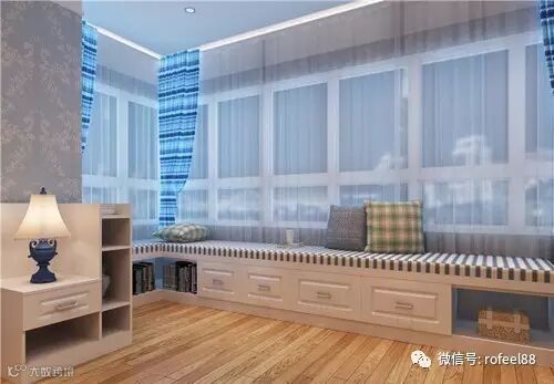 虽然没有精雕细琢的抢眼设计,但此款飘窗的当之无愧荣登最美飘窗改造之一,一切都因其舒适取胜。利用足够突兀的飘窗区域,设计足够宽敞的休息平台,够长的空间,加上合适用色的靠包,让人尽情享受角落那份明朗的舒适。