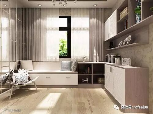 定制飘窗家具,把飘窗的空间利用起来,可以是娱乐区、收纳区、书房,甚至是你想要的其他空间。给自己一个飘窗,改装成自己喜欢的样子,闲来无事看书会友,偶尔也放松身心,享受一下慢生活。