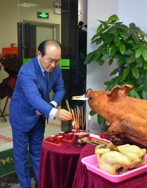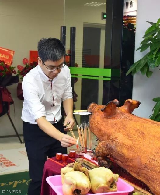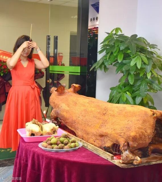 进入公司映入眼帘的是笑逐颜开的烧猪,同事为九点举行的拜神仪式早早来到现场准备好了一切,