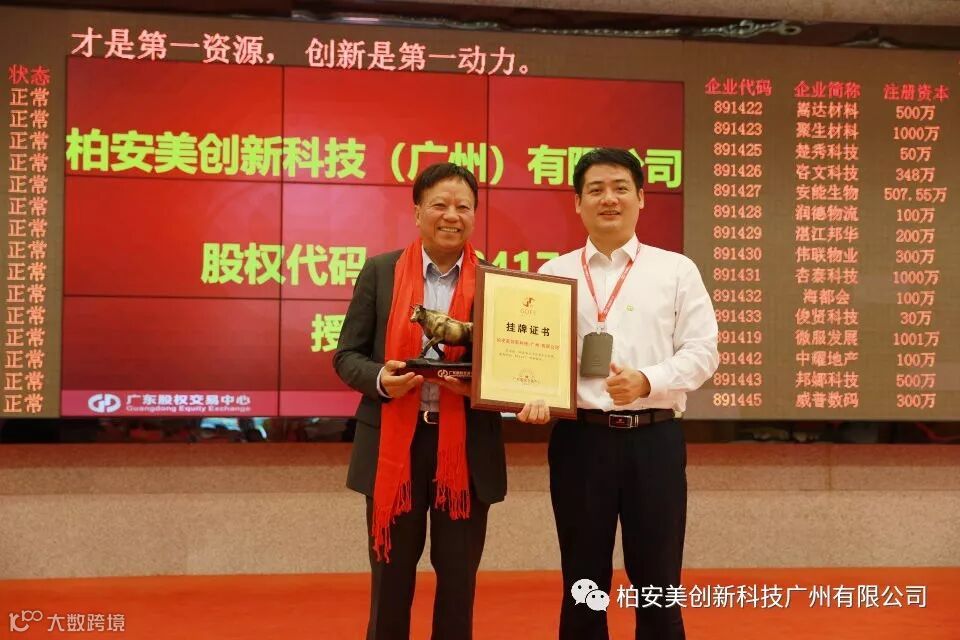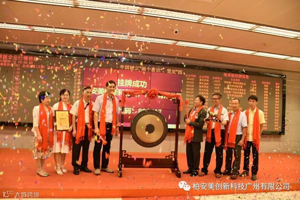 2019年9月19日,柏安美创新科技(广州)有限公司(以下简称“柏安美”)在广东股权交易中心成功挂牌上市。