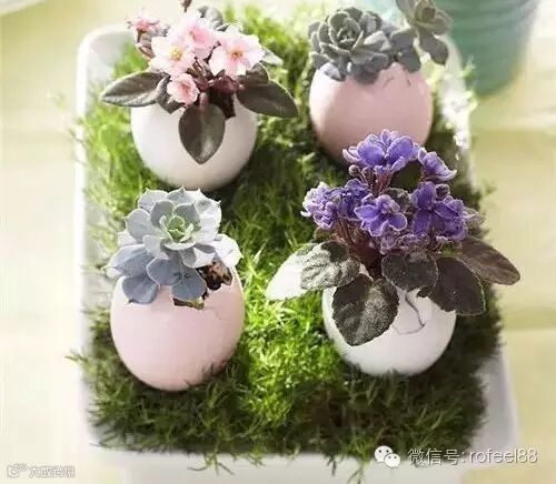 大热的多肉植物种在蛋壳里,感觉整“枚”花都变得圆滚滚和萌萌哒!