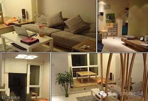 简单的植物,茶几,沙发组合成这个小小的客厅,飘窗被装饰成了一个小小的茶室,小饮几杯,也很惬意的。