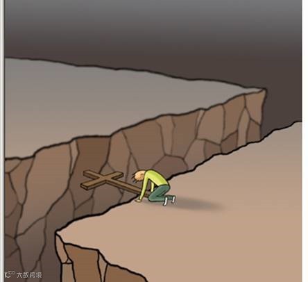 啊哈!谁料,前边忽然出现了一个又深又宽的沟壑!沟上没有桥,周围也没有路。也没有蜘蛛侠或者超人出来解救他…