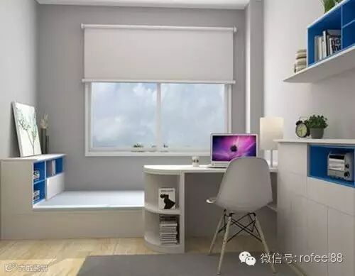 以蓝白搭配,创造更多的生活动力。将榻榻米放置在玻璃窗旁,阳光透过百叶窗洒进榻榻米内。在盈白的主色调上,利用湛蓝的木板划出整齐的边框,共同调和出恰到好处的视觉感受,为书房创造出更多表情,加入展示柜,提供开放式的收纳选择。
