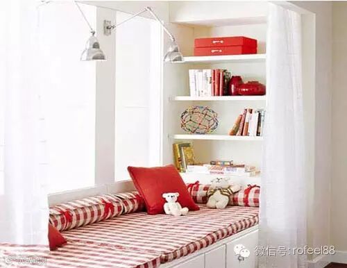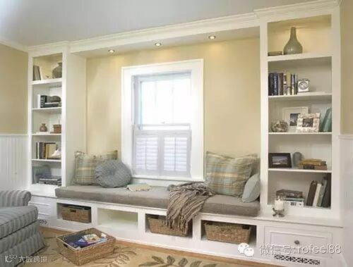 这种飘窗相对来讲比较常见,看书发呆什么超有feel,家里有客人来也可以在此落座,绝对是一件让你的朋友为之羡慕的事。光想想这样悠闲的晒晒太阳,和朋友一起畅快的聊天,就已经感觉很惬意了。