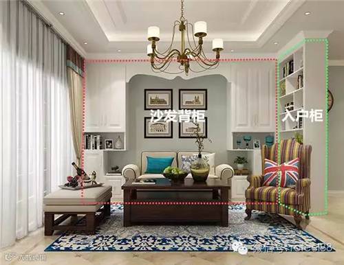 ▲整墙式沙发背柜与隔断柜相接,造型优美,非常大气。这样的组合柜美观实用,很自然地就将客厅与其它功能区区分开来。
