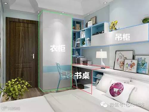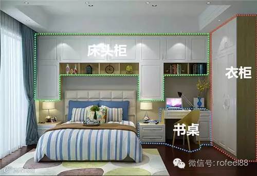 ▲床头柜、书桌和衣柜组合,将墙面空间用到了极致不留一丝缝隙。拥有这么一个组合柜,谁还敢说你的卧室狭窄。