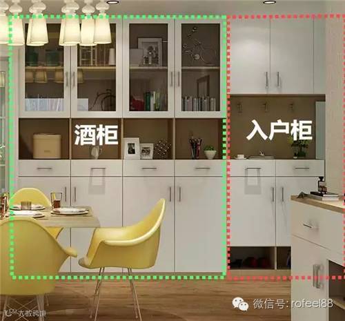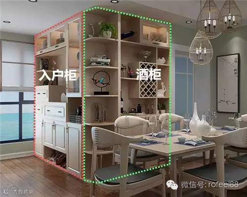 ▲酒柜和入户柜在同一水平线上,共用一面墙,既完美装饰了墙面。客人一入户就能感受到这款组合柜的大气与美观。