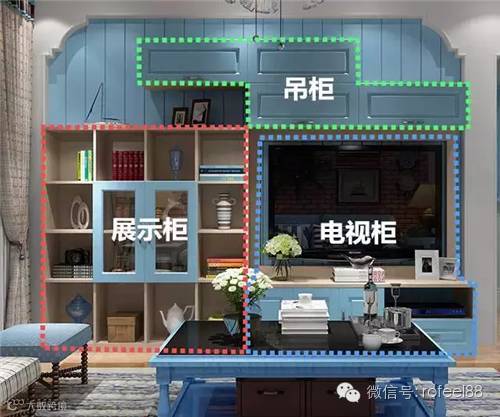 ▲电视柜、展示柜和吊柜共占一面墙,既为客厅节省了不少空间,又丰富了造型和功能,加大了收纳空间,让客厅空间不再拥挤。