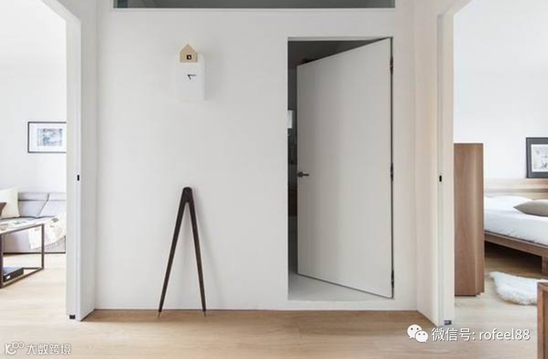 隐藏式门跟墙面有着惊人的相似性,如果不刻意看,你都发现不到它。不要门框,也不给门的高度设限,这样的隐藏式门让空间更具整体性。