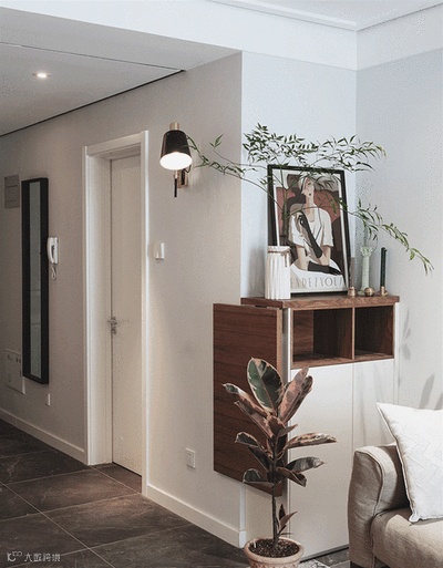 把电视机隐藏在推拉门后面,毫无违和感。把门拉上一点都看不出来里面还藏着电视机,更显简洁。