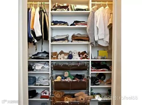 在衣物收纳的柜子给可爱的布偶玩具一席之地,让枯燥的衣柜有了可爱的视觉感受。