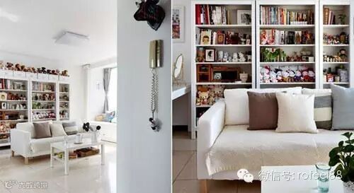 很多人喜欢收集玩偶,大的玩偶摆放要求低,但是小而多的玩偶收纳不好的话就会显得家居凌乱不堪,大排的格子书架是零碎小摆件的福音,整齐的摆放在格子间,多而不乱,既解决收纳问题,又展示家居美感。