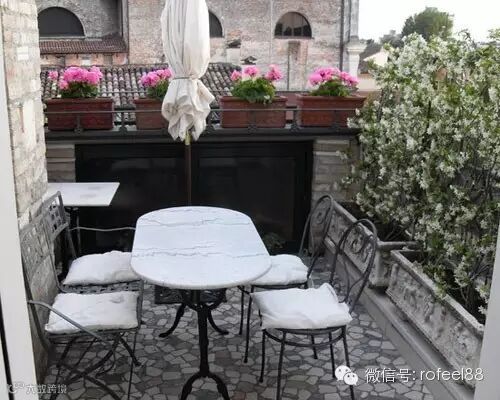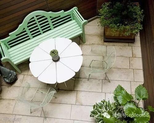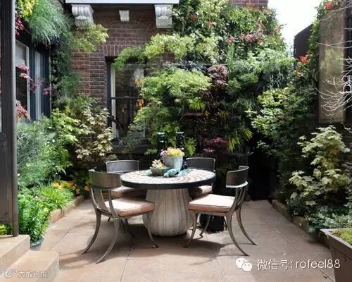 不得不承认,在装修里植物是种神奇的存在,即使是冷硬的砖墙建筑也会因为它的包裹而恰巧如画。在绿叶锦簇的中间一套桌椅,也是会客的好地方。