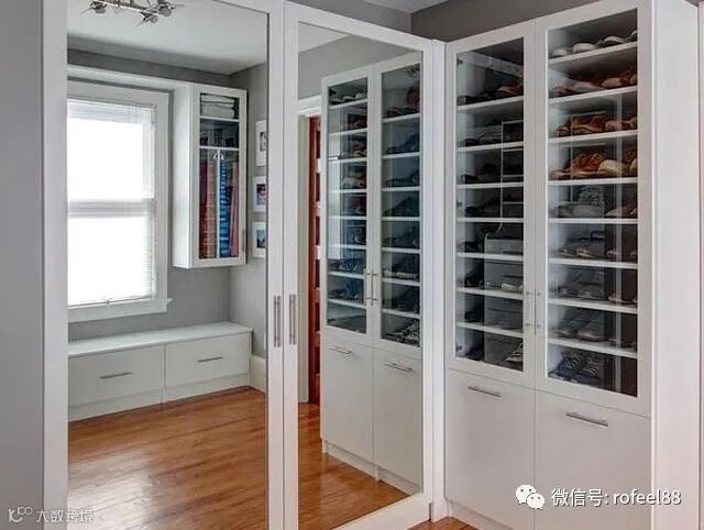 拉斐尔全屋定制来给大家讲讲,在紧挨墙柜右侧墙面是一组宽大的双开门衣柜,与鞋柜形成90度拐角,两扇衣柜门上各镶嵌通体的镜子,方便家人出门前整理自己的仪容仪表,同时也增强了衣帽间的空间感,让衣帽间视野更开阔。