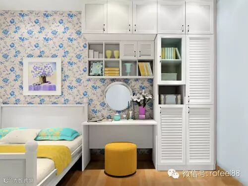 某些卧室梳妆台在镜子部份有两扇门作装饰,在不需要使用镜子时,可将其关闭,使用时才打开。而使用这种镜子,无论怎样安放,也不怕冲门或照在床头了。