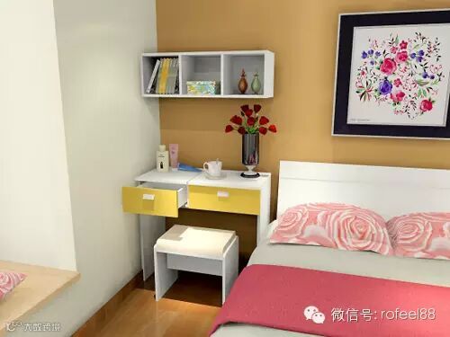 卧室梳妆镜不能照床头,否则,容易造城做恶梦或者精神欠佳,梳妆镜一般都和床平行而放。