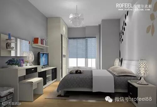 5、天花板的颜色必须浅于墙面或与墙面同色。当墙面的颜色为深色的时候,天花板必须采用浅色。衣柜颜色应该根据整个房间的墙壁和地板等色块来选择。