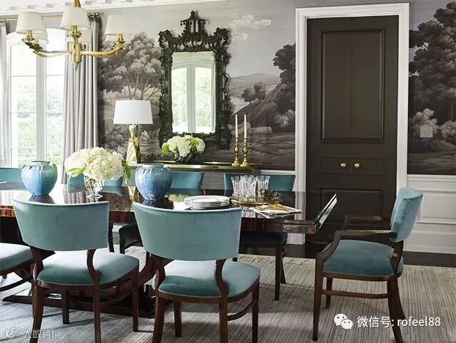 如今,墙饰不一定要使用浅色。钴蓝色,凯利绿色甚至茄子色等颜色都可以大胆地被运用,令空间充满个性和优雅。