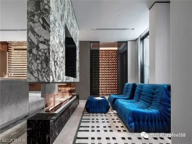 经典蓝与高级灰的组合,是尊贵的传承,是优雅的积淀。在高级灰空间填入经典蓝家居,如同是北极海里浮沉的冰川,暗沉的灰度色泽交织着澄澈明净的色调,波浪的每一次涌动都似在诉说亘古不变的旋律。而一抹亮彩的投射,更为端庄稳重的空间加持出一股清新与灵动。