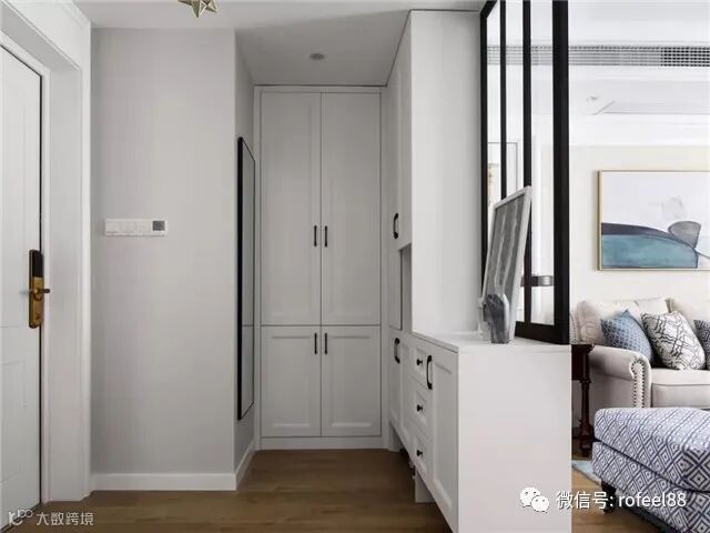 因为受面积和空间的控制,所以当面积真的不适合做一个完整的玄关时,可以借助家具来“制造”出一个假玄关。