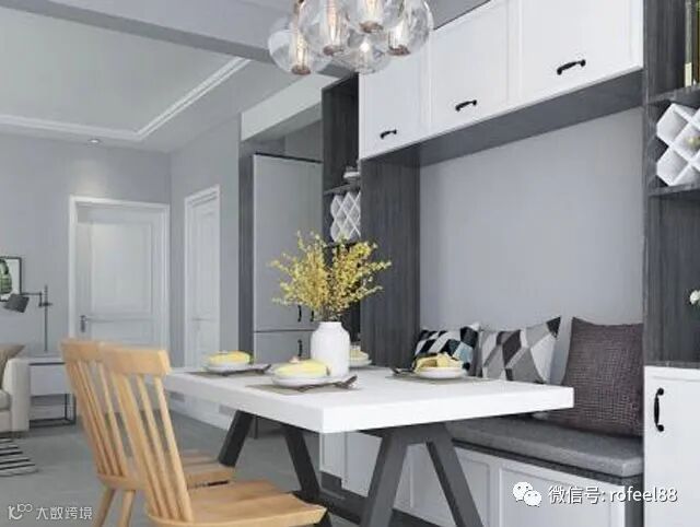 普通的餐桌使得空间无法进行更好的利用,卡座可以进行一体化设计,背后和两边的空间都可以利用起来。