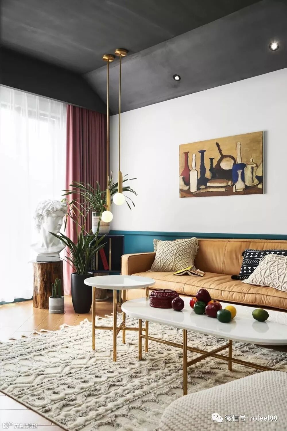 客厅里可以配一些辅助照明灯,比如沙发两侧就可以布置吊灯或落地灯,通过铜色的搭配,也可以在细节处增加空间的奢华感。