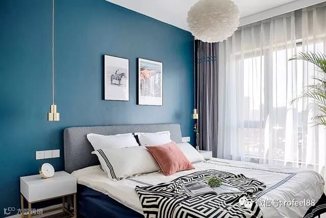 卧室作为私密空间,一般都装吸顶灯为主,如果是装吊灯的话,那么铜色的主灯搭配也是轻奢风卧室不错的选择。