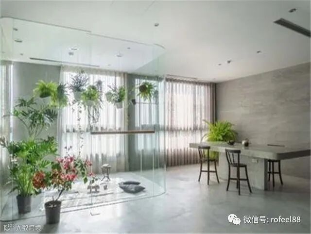 一推开门,首先映入眼帘的便是这温馨的室内小花园了,来访的人们都会不由自主的被其深深吸引。泡泡般的玻璃温室被设计安排在家的中间,走近温室会发现客房及客餐厅的位置也随之出现,为原本空荡的起居空间划出了明朗的线条,设计师谈及这个特别的场域时,表示并不是为了要做出刻意的创新之举,而是以小孩的视角去思考、设计的,在都市丛林中生活,家里若是能够拥有一隅自然、绿意,或许能让孩子在更舒适的环境下成长,几年后等到孩子长大了,此处也能够根据情况重新进行规划。
