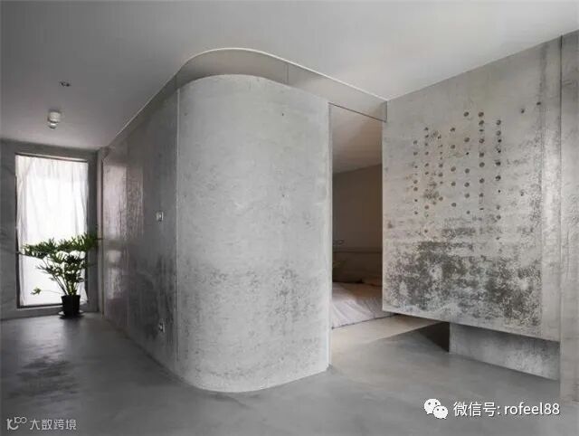 卧室外的墙在浇灌过程中,会因为水分、空气、重力等自然因素影响导致最后呈现出不同的风貌,也就是说,不到最后一刻,你不会知道这面墙最终会是什么样子,而这也正是水泥最为迷人、最为令人惊喜之处!为了让视觉感较重的水泥墙也能与其他场域相联结,设计师将小片的透明亚克力融入水泥中,上方也留下一段玻璃空间,等于是为全室的明暗辟了透明路径,使得内外的光线能够相互牵引。