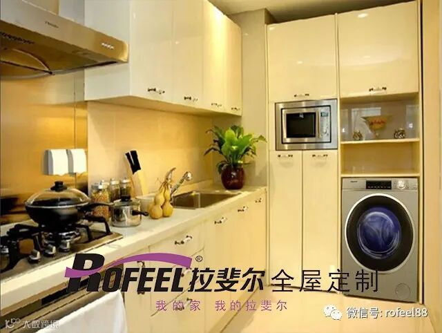 拉斐尔家具再来告诉大家最后一点,那就是厨房电器的巧妙收纳,冰箱、烤箱、微波炉、洗碗机......现在厨房电器越来越多,而且在一些小户型的设计当中,会选择将洗衣机放入厨房。所以应该尽可能地将电器容纳进橱柜里,让台面显得更加清爽。尤其在L型厨房中,当电器嵌入到适当的位置,则可以在使用的时候互不干扰,进而大大提升效率。