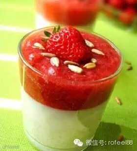 7、再放芒果粒.各放半粒士多啤梨(草莓)即可.