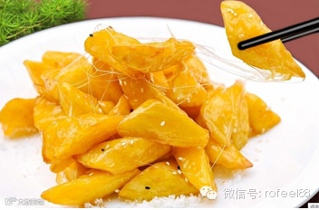 1, 地瓜削皮切块,进由锅.炸至外表变硬,颜色金黄色捞出控油备用;