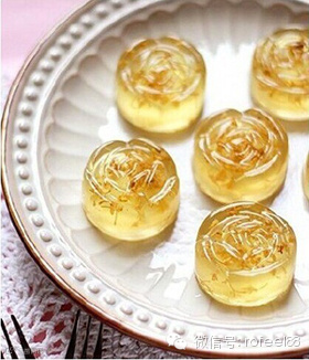 材料:干桂花5克,白糖30克(可根据自己喜甜的程度调整),琼脂15克,开水1000克.