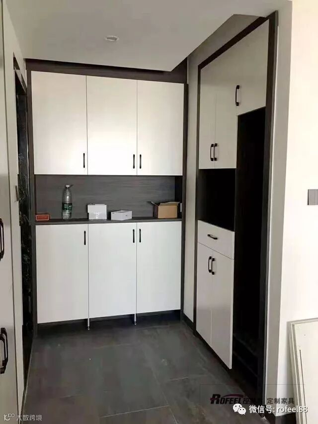 经典的黑白玄关鞋柜,没有过多繁杂多余,的装饰,采用上下对称掩门设计,中间镂空,可放置日常所需要的物品,例如取钥匙,包包,雨伞等,拿取自如非常轻巧方便