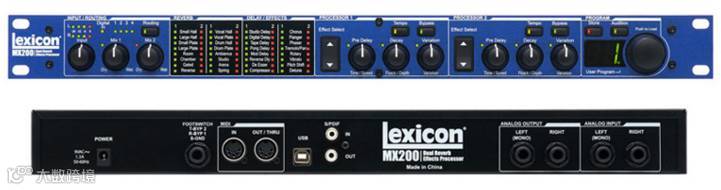 这款新的1U双通道设备将直观的前部面板设计和USB接口功能结合在一起,可以VST格式与软件录音平台结合使用。包括了大量混响算法、delays效果和dbx的动态效果器,MX200适用于个人录音室和音乐厅录音。其提供了功能强大、操作方便的动态处理和效果器,保持了Lexicon的声音特色。MX200提供了VST插件格式的操作平台,允许MX200作为硬件插件在VST工作站中使用,通过USB与电脑连接。USB的功能允许用户在电脑工作平台的图像界面中对效果器参数进行调节,并且具有完整的自动化和唤回功能。