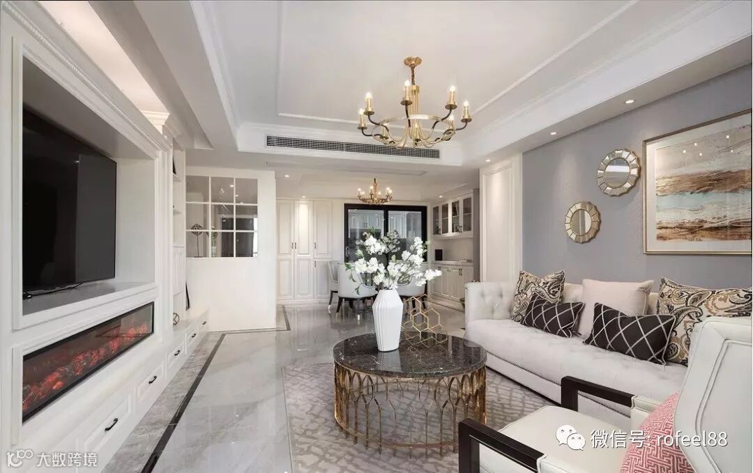 ▲ 整体以高级灰与白色为主色调,辅以金色软装进行装点,营造精致轻奢的氛围感。