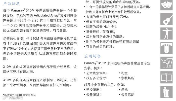 专利的铰接列阵扬声器设计将单元放置在一个多腔体的箱体,使310M可以将演出的声音真实的反馈给表 演者。
