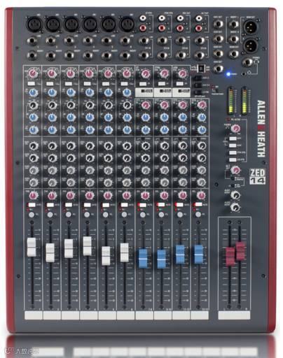 ZED-14是A&H全新ZED系列的第一款模拟调音台,13路输入,10路输出,2个推子前辅助通道和2个推子后辅助通道,USB与电脑连接后可双向传输2路信号。