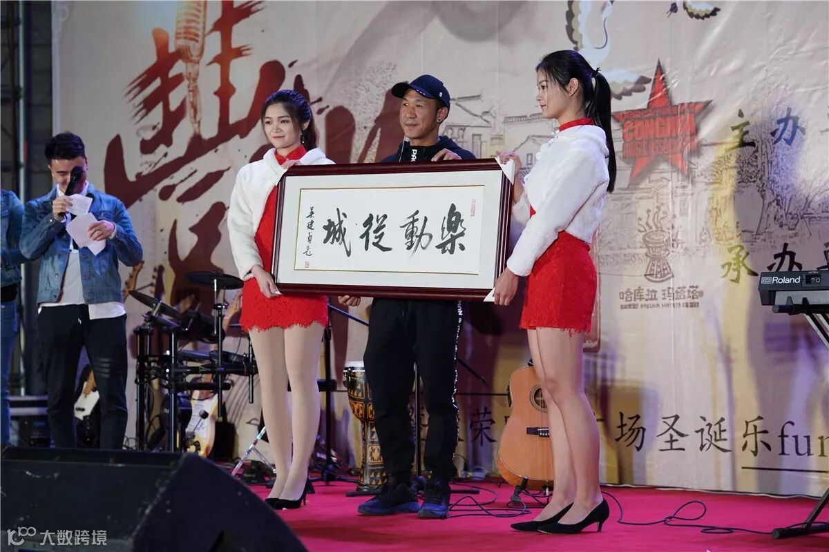 ▲从化区文联主席吴建贞授予从化区流行摇滚音乐协会会长黄建雄“乐动从城”牌匾